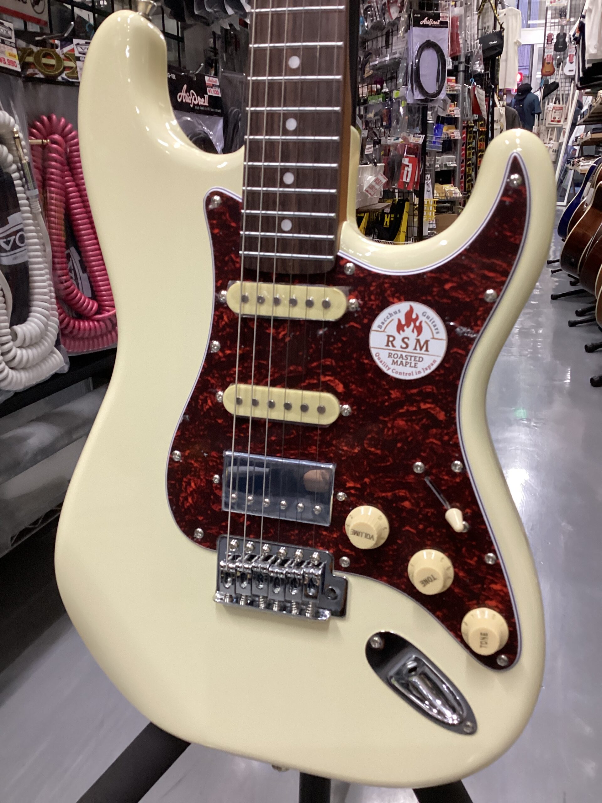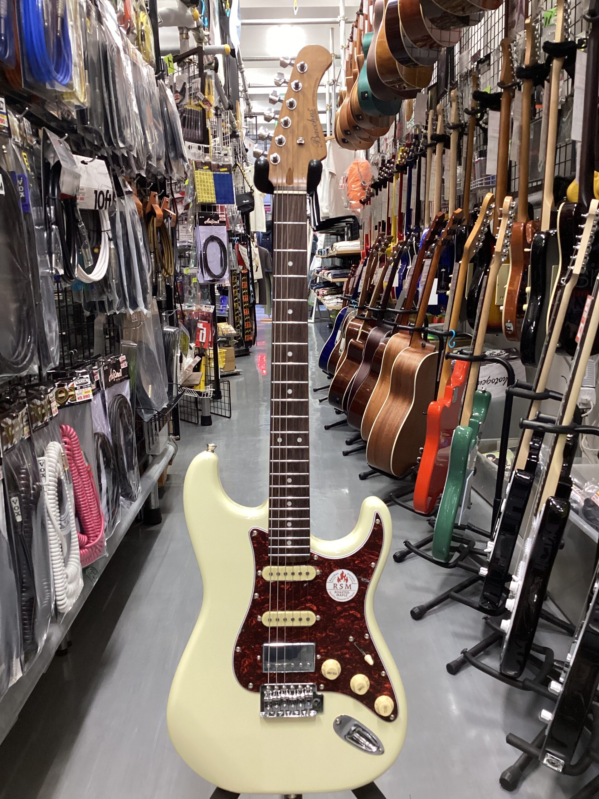 「BST-2-RSM/R」をベースに、カスタマイズの定番ともいえるべっ甲柄のピックガードを標準装備したスポット生産モデルです。厳選したビンテージ・カラーとの組み合わせで、上位機種に迫るルックスを実現しました。SSH(シングル・シングル・ハムバッカー)配列のピックアップ仕様。リアポジションのハムバッカーにはコイルタップ機能を搭載し、シングルコイルとしての使用を可能にすることで幅広い音作りに貢献します。